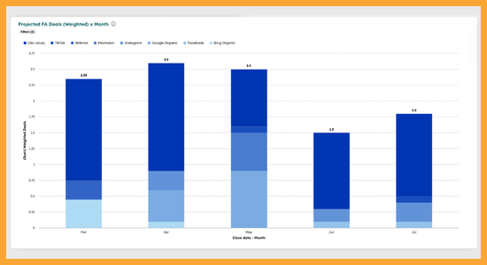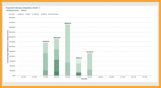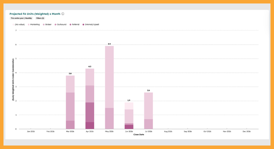 HubSpot has all the tools you need to create projections and reporting on the Deal in your Franchise Sales pipeline that are expected to close. The setup and tools are simple and easy to use. You just need to process and diligence to use them well.
